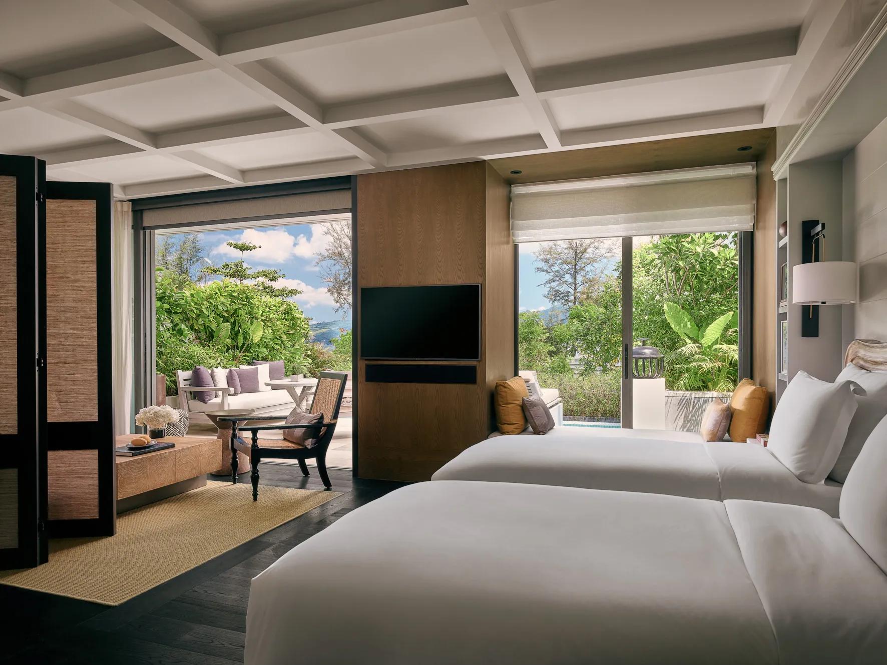 Blotti le long de la paisible plage de Tri Trang, le Rosewood Phuket est une adresse confidentielle où nature luxuriante et élégance contemporaine se rencontrent. Bordé par la mer d’Andaman et entouré de collines verdoyantes, ce refuge exclusif offre une atmosphère intime et raffinée. Les villas et pavillons, tous dotés de piscines privées, séduisent par leur design épuré, leurs matériaux nobles et leurs larges baies vitrées ouvertes sur la végétation ou l’océan.